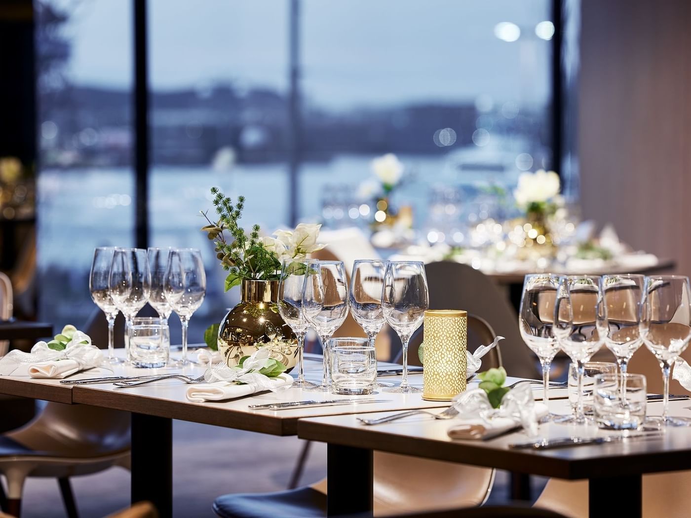 Genießen Sie mit Ihren Lieben ein köstliches 4-Gänge-Menü, begleitet von einem glitzernden Blick auf den Hafen durch die Panoramafenster des Restaurants, gefolgt von einem Feuerwerk über dem Wasser.