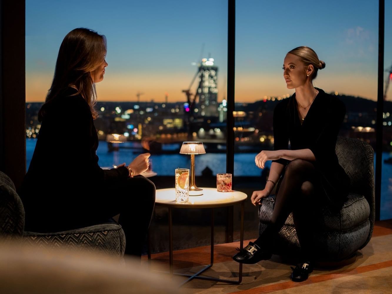 Set on the 12th floor of Hotel Riverton you will find our signature restaurant and bar, View Skybar & Restaurant. With scenic views over Gothenburg and the harbor entrance from the floor to ceiling panoramic windows, we offer an ambiance unlike anything else in Gothenburg. The décor is chic, luxurious yet welcoming with a mix of designer furniture, high end materials and art pieces.